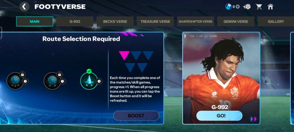 ➤ After selecting Gullit and completing a match/skill game you unlock chapters — example: G-992. These chapters contain rewards and access to verses.