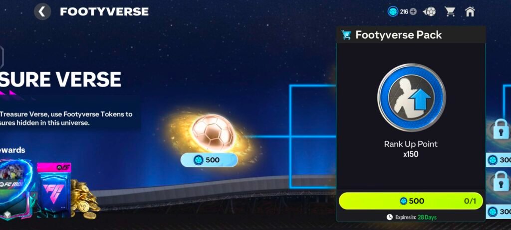 - 🎟️ Acquire 10 Footyverse Tickets → 40 Rank Up Points