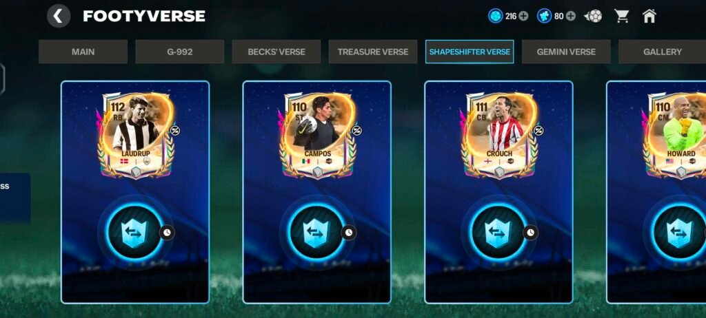 - Shapeshifter Verse offers strong utility cards (Laudrup, Crouch, Gravenberch) — prioritize ones that fit your team chemistry or position gaps.