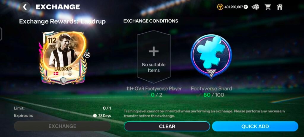 - Complete player exchanges in the Footyverse Hub to recycle older cards into new 109+ and 110+ ones for extra value.