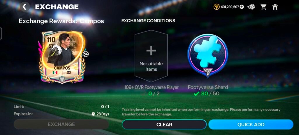 - Use lower OVR Footyverse players (105–109) for early exchanges instead of wasting high OVR cards.